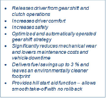 The Tata AMT buses come with Manual and Automatic with Economy and Power modes. In power mode, the Automatic Gear Detection (AGD) emphasizes sufficient engine torque capability, to maintain agility and drivability even in case of demanding duty cycles, while the economy mode ensures optimal fuel consumption.