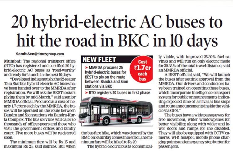 20 Hybrid Electric AC Buses to hit the road in BKC in 10 days