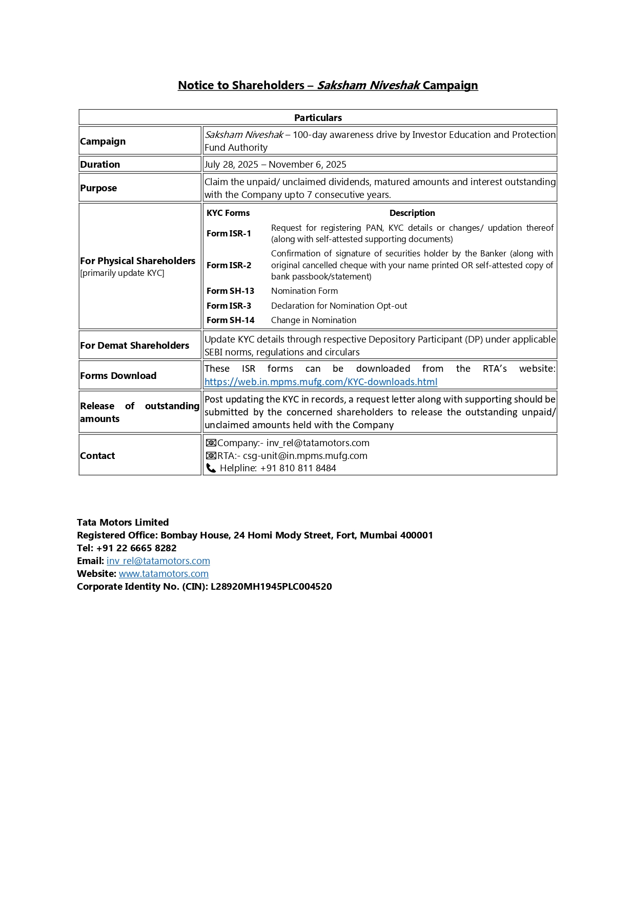 © Copyright 2025. All rights reserved. Tata Motors Limited.